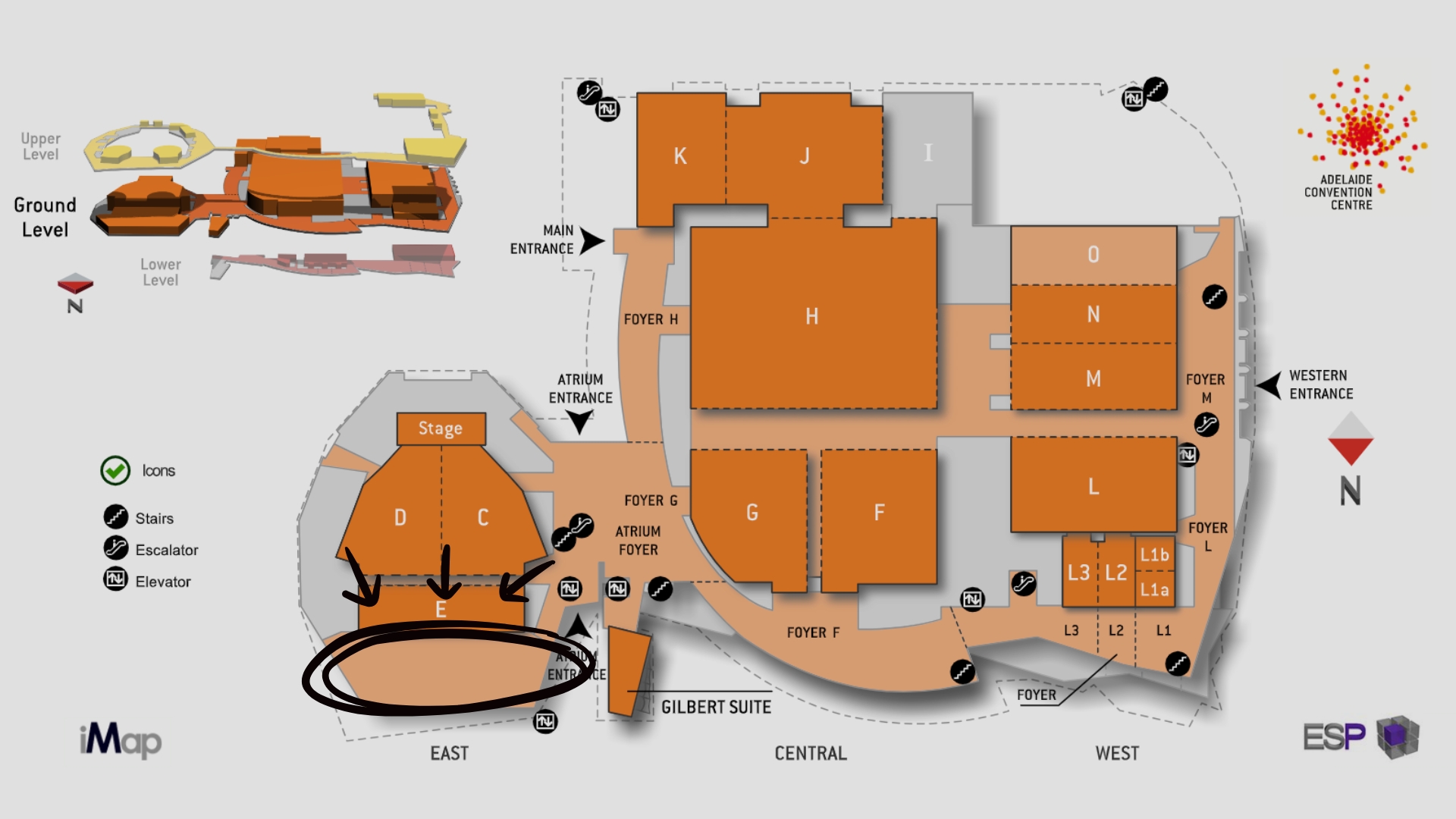 Location: Adelaide Convention Centre on Ground Level, Foyer E (east side – outside Hall E)